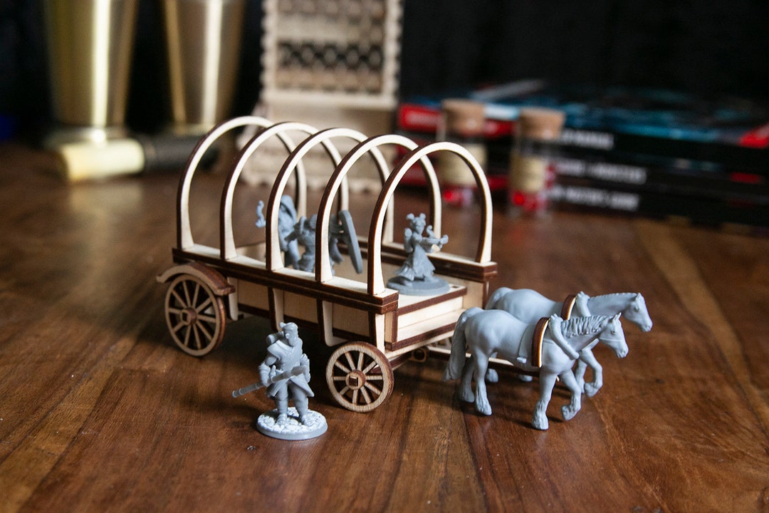 Wagon With 3d Printed Horses Kit Wooden Laser Cut Dungeons Etsy New Zealand