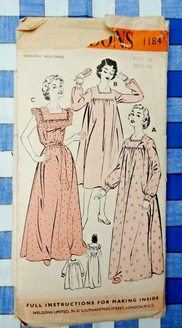 Original Vintage Sewing Pattern Ladies 1940s Ww2 Night Dress 36 Bust Hips 40 10 00 Picclick Uk